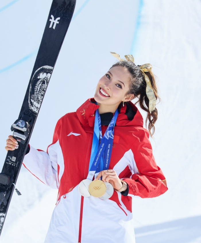 在米兰冬奥会上,她斩获一金两银,成为自由式滑雪历史上斩获奖牌最多的选手。